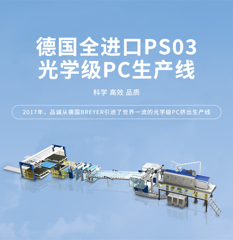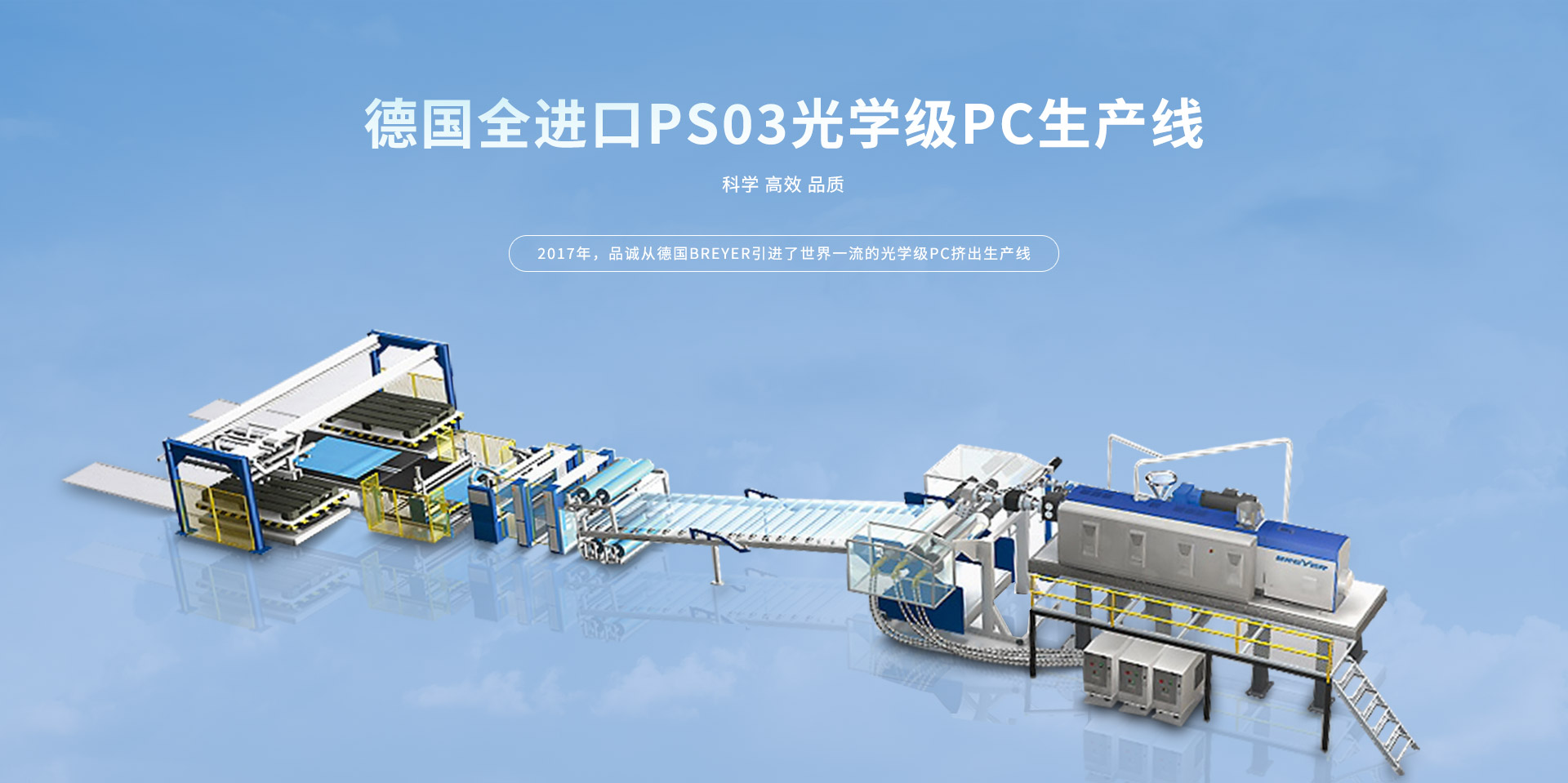 優(yōu)質(zhì)的光學(xué)透明板材均來(lái)自BREYER擠出生產(chǎn)設(shè)備。德國(guó)BREYER擁有60多年的擠出板材生產(chǎn)設(shè)備的研發(fā)制造經(jīng)驗(yàn),為世界市場(chǎng)開(kāi)發(fā)和制造高先進(jìn)精密的擠出技術(shù)。在中國(guó)制造2025與德國(guó)工業(yè)4.0契合的背景下,BREYER將為品誠(chéng)提供可靠的光學(xué)PC擠出生產(chǎn)方案。